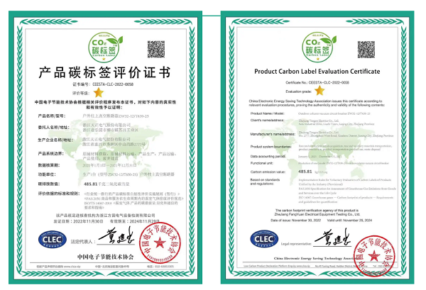 此次碳标签评价表明,金年会电气生产的户外柱上真空断路产品,在碳排放大数据方面按国际通行惯例推进,并具备一定的优势,对促进产品全供应链的温室气体减排,达成“双碳”目标具有积极作用。此外,金年会还获中国电子节能技术协会颁发的低碳产品供应商证书